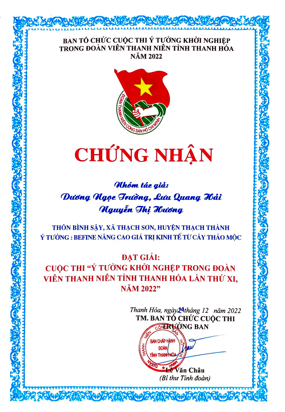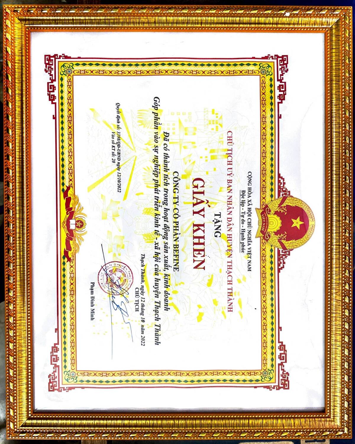 Giấy chứng nhận và giải thưởng đạt được