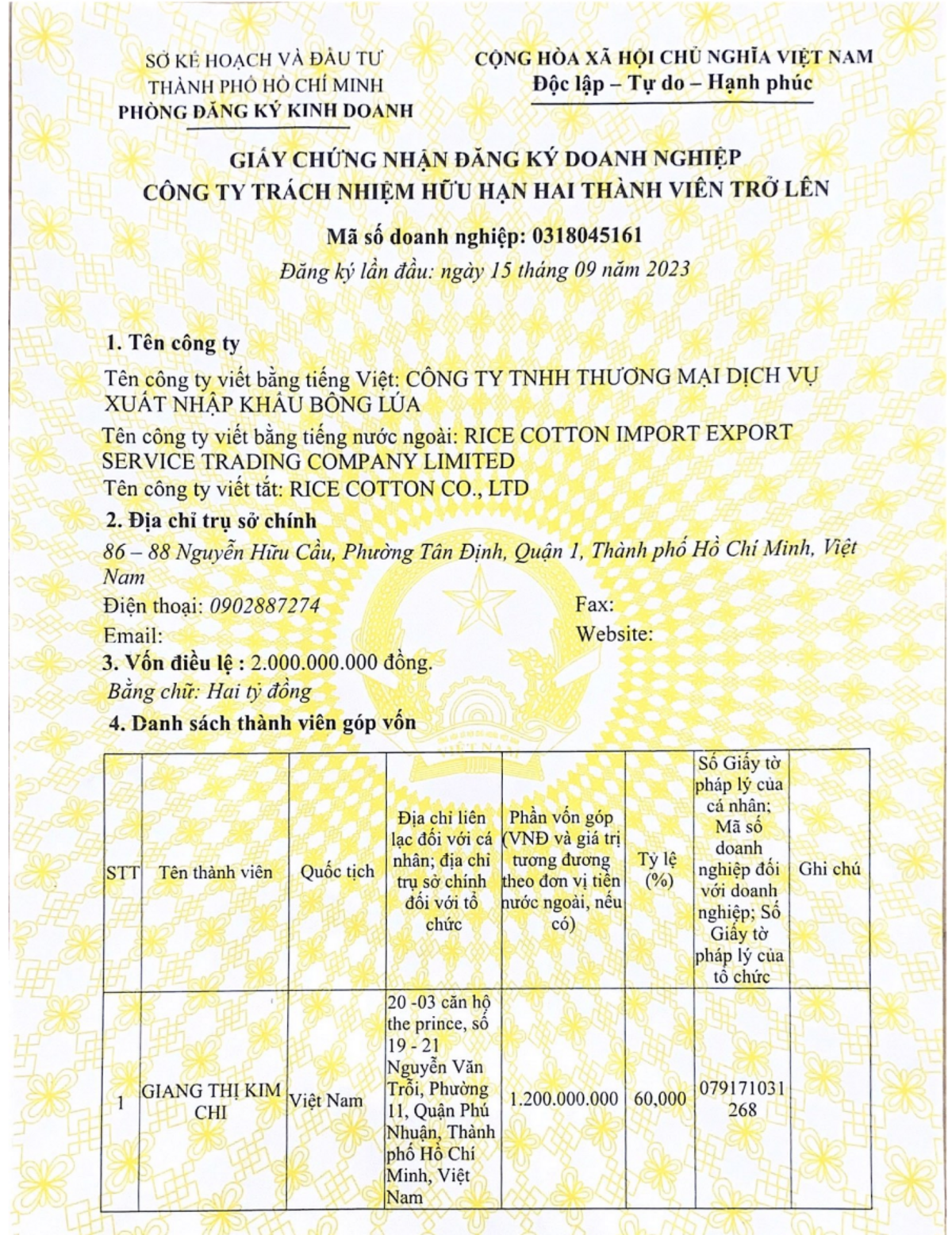 CTY TNHH THƯƠNG MẠI DỊCH VỤ XUẤT NHẬP KHẨU BÔNG LÚA