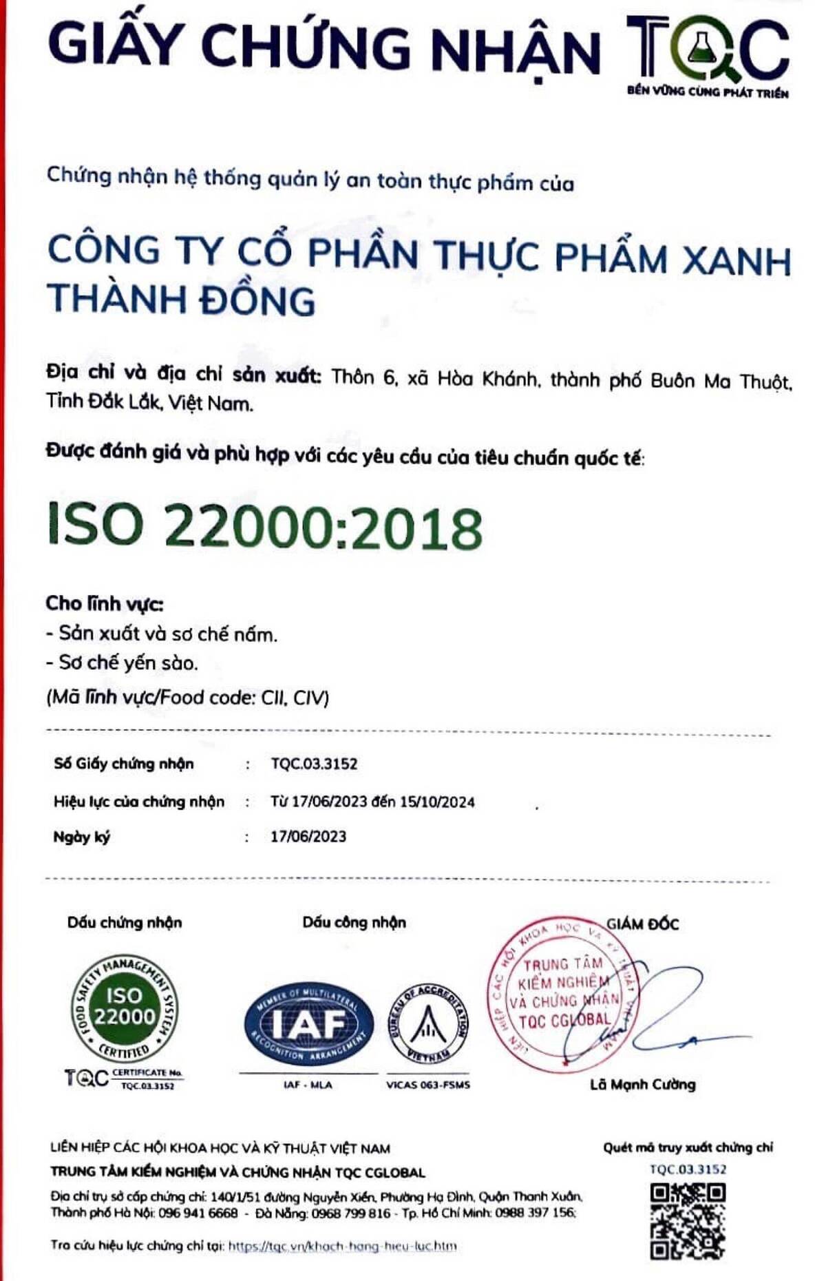Công ty cổ phần thực phẩm xanh Thành Đồng