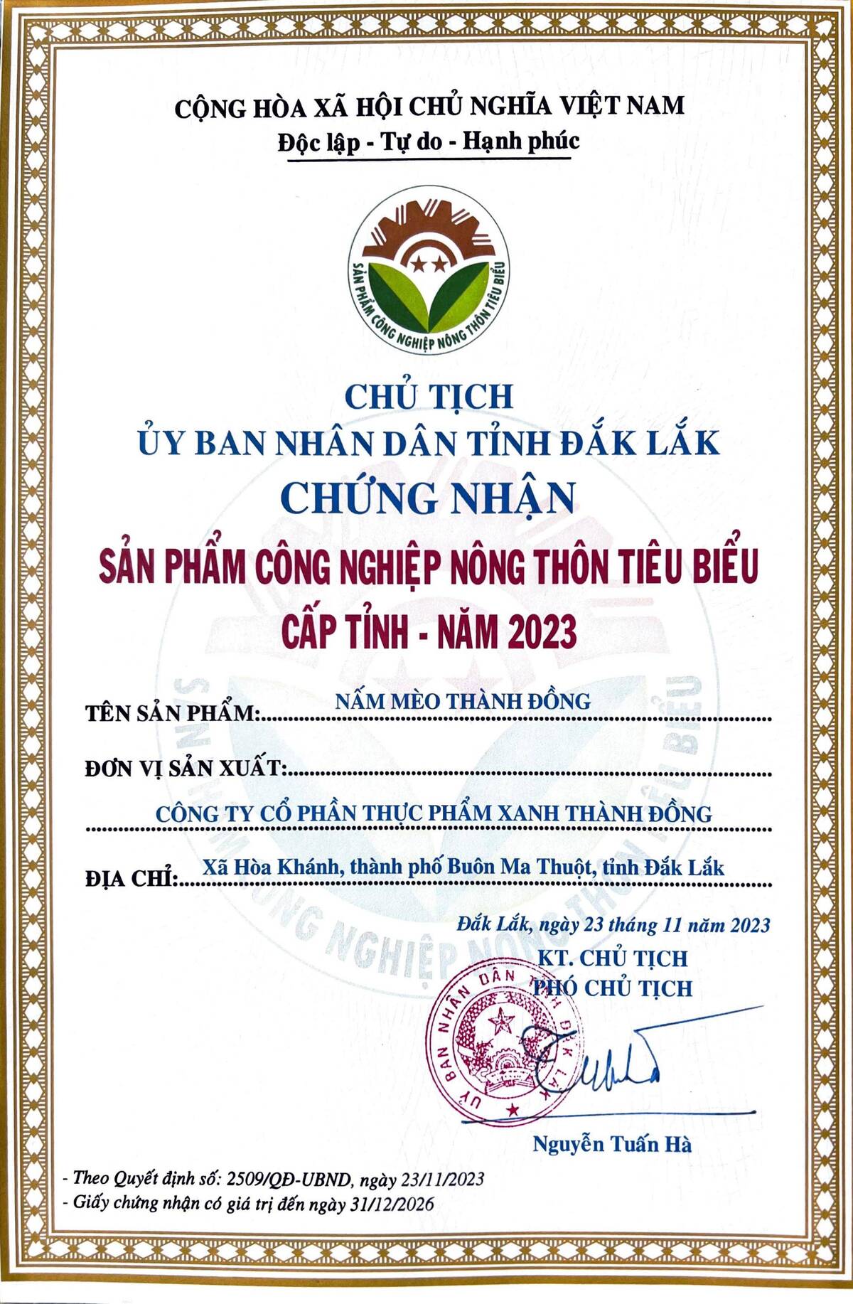 thôn 6, xã Hòa Khánh, thành phố Buôn Ma Thuột, tỉnh Daklak