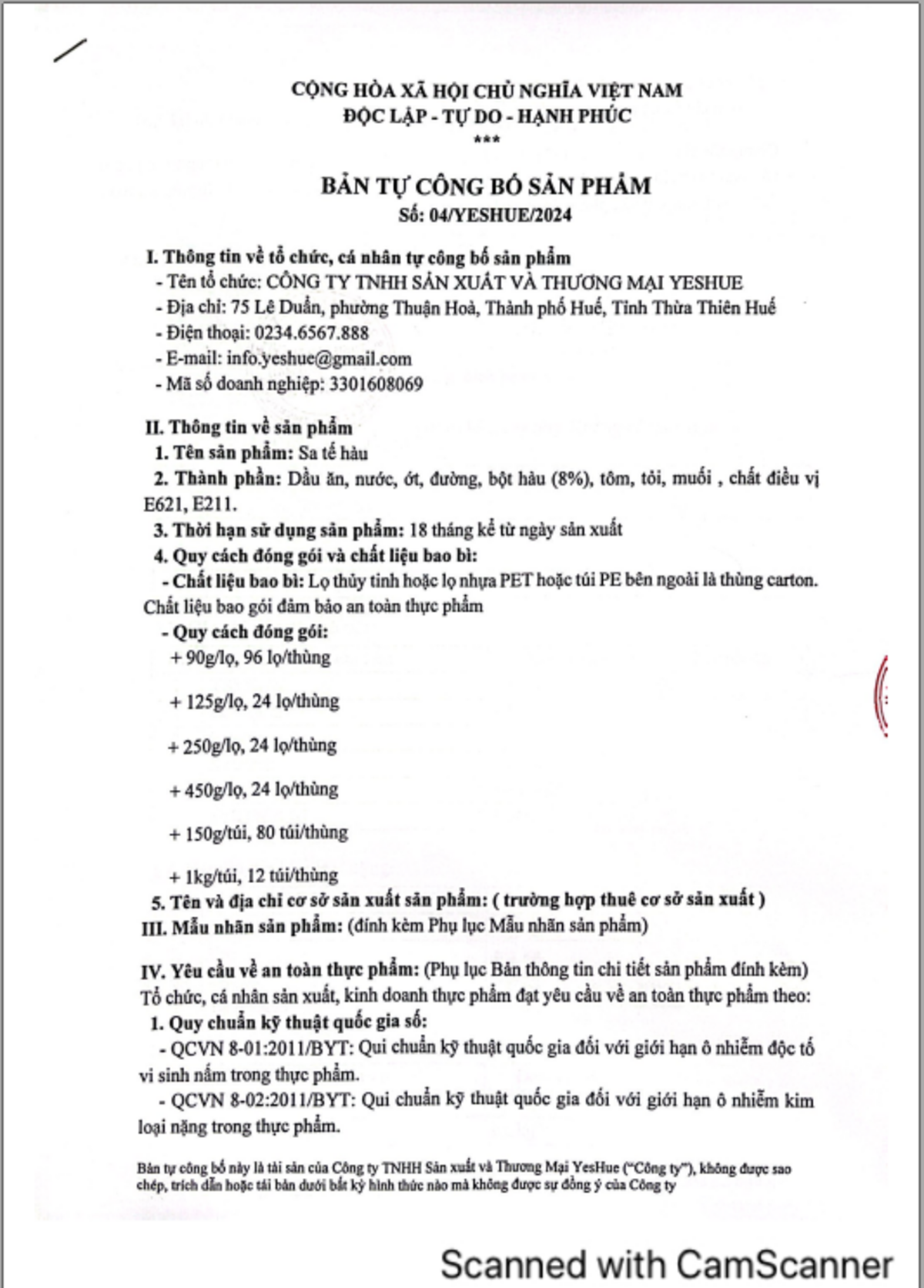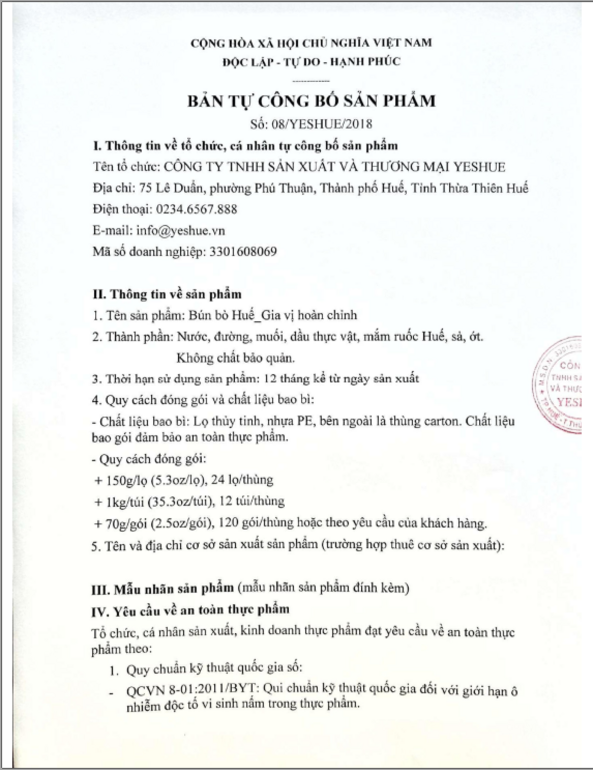 Công ty TNHH Sản xuất & Thương Mại YesHue