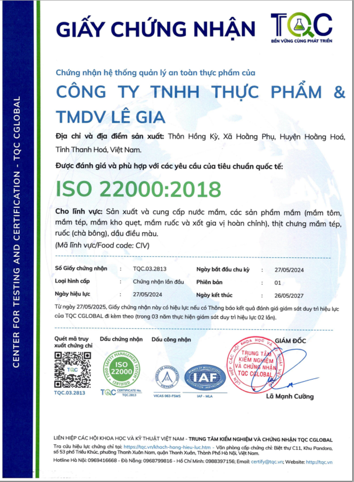 CÔNG TY TNHH THỰC PHẨM & TMDV LÊ GIA