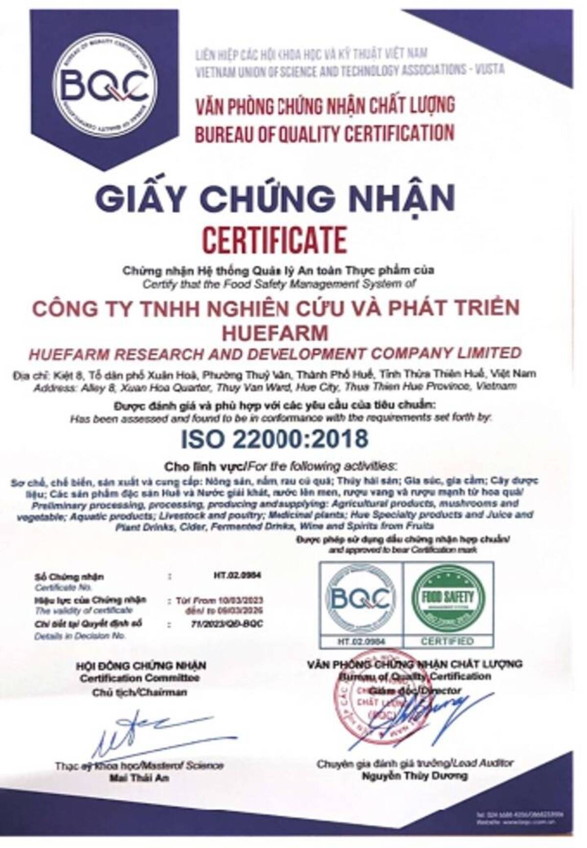 Huefarm tự hào và cam kết đem đến những sản phẩm chất lượng, nguyên liệu tự nhiên, đáp ứng vệ sinh an toàn thực phẩm, kiểm nghiệm an toàn của Bộ Y Tế đến tay người tiêu dùng không chỉ trong Huế mà là khắp nơi mọi miền đất nước.