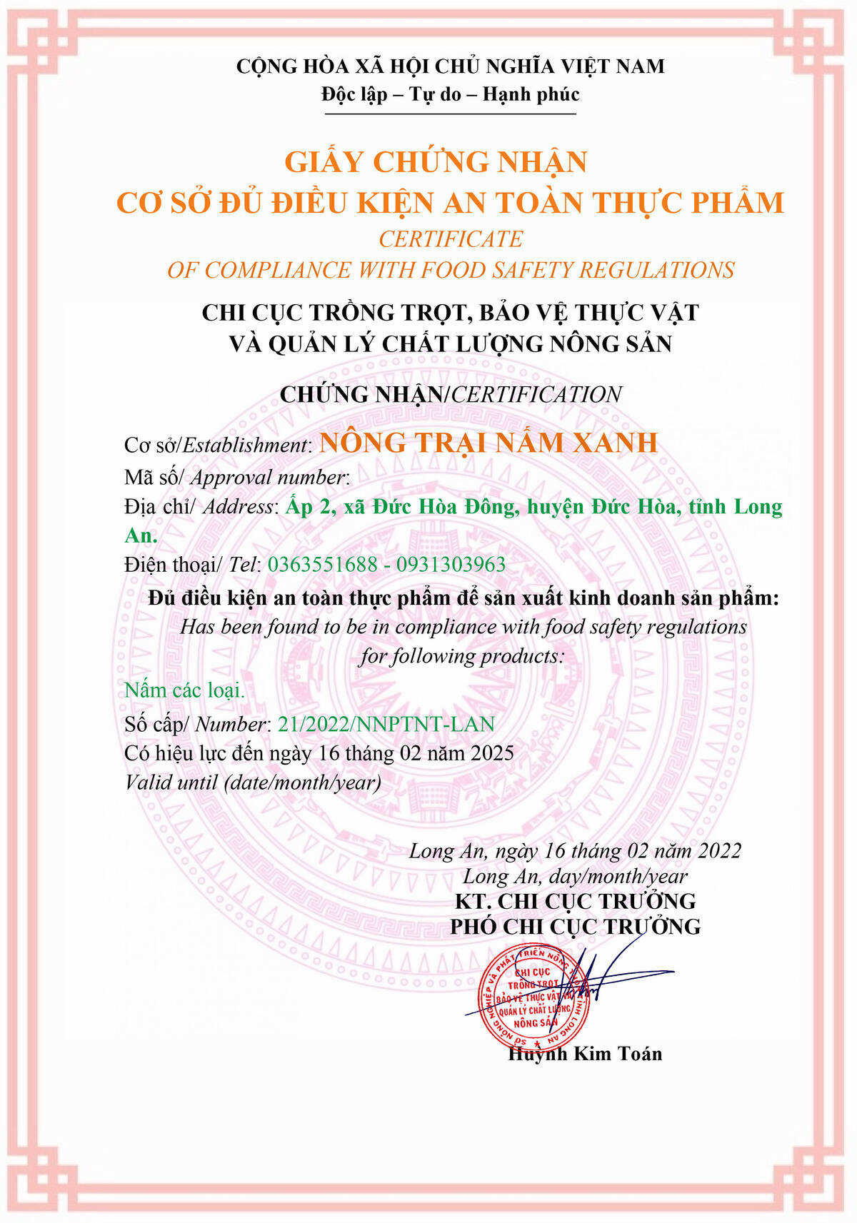 Năm 2016, Nông Trại Nấm Xanh ra đời, là nơi quy tụ những anh em có niềm đam mê với nông sản sạch và yêu thích "nấm", được gầy dựng từ những người có nhiều năm kinh nghiệm trong lĩnh vực nông nghiệp nói chung và trồng nấm nói riêng. Năm 2023, với các nông trại sở hữu bởi Nông Trại Nấm Xanh và nông trại hợp tác vệ tinh, chúng tôi đủ sức cung cấp nấm số lượng lớn lên đến hàng chục tấn mỗi tháng cho những đối tác là khách hàng (KH) nhỏ đến KH lớn tại nhiều khu vực. Năm 2024, Nông Trại Nấm Xanh đã phủ rộng hoạt động kinh doanh, phân phối tại một số tỉnh thành lớn trọng điểm từ miền Nam xuống miền Tây và ra Trung, sắp tiến tới Bắc. Ngoài ra, Nấm Xanh đang là nhà cung cấp nấm cho một số hệ thống kinh doanh như quán ăn chay/mặn, nhà hàng chay/mặn, chuỗi siêu thị lớn, siêu thị tiện lợi mini, cửa hàng/chuỗi kinh doanh thực phẩm sạch cũng như các doanh nghiệp (DN) chuyên về ẩm thực và gia vị từ nấm.