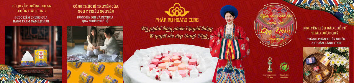 Phấn Nụ Hoàng Cung là loại mỹ phẩm cao cấp được sử dụng trong Hậu cung để điểm tô dung nhan cho phụ nữ Hoàng tộc thời kỳ nhà Nguyễn. Được dày công nghiên cứu bởi các ngự y cung đình Huế, phấn nụ chứa các thành phần từ cao lanh hảo hạng và các loại thảo dược thiên nhiên, giúp mang lại làn da tươi sáng, rạng rỡ.
