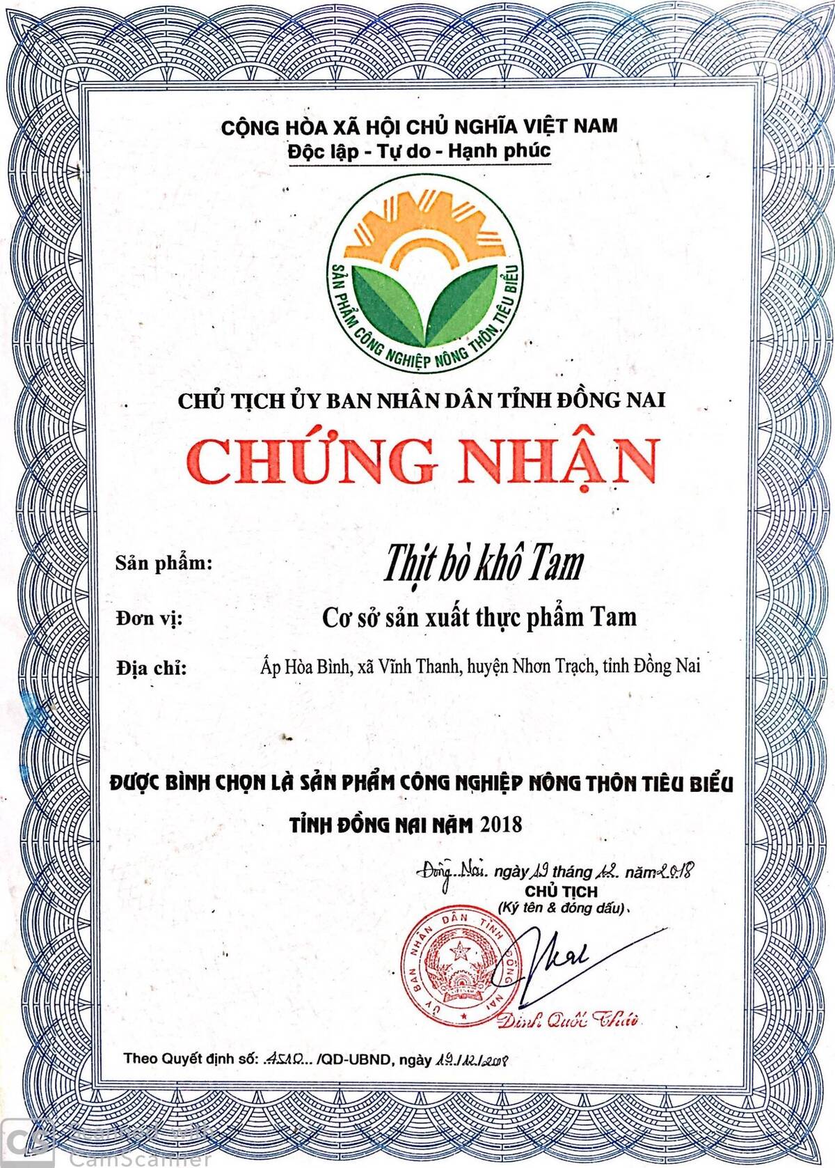 Giấy chứng nhận và giải thưởng đạt được