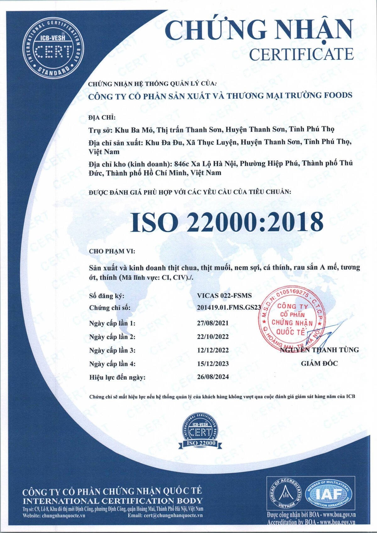 – Với quy trình sản xuất khép kín đạt tiêu chuẩn ISO 22000 là tiêu chuẩn vệ sinh an toàn thực phẩm quốc tế.